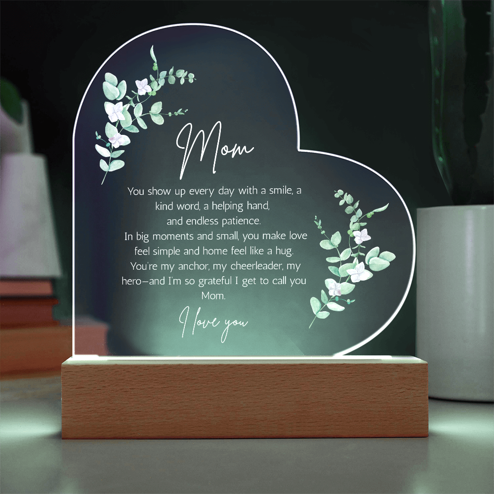 Show your love in a way that lasts with our beautifully designed acrylic sign for Mom. Unlike flowers that fade, this timeless piece serves as a daily reminder of your appreciation and love. Crafted with elegance and meaning, it’s the perfect gift for Mother’s Day, birthdays, or just because. Make her smile every time she sees it—because Mom deserves nothing less than forever love.