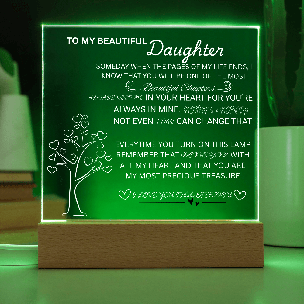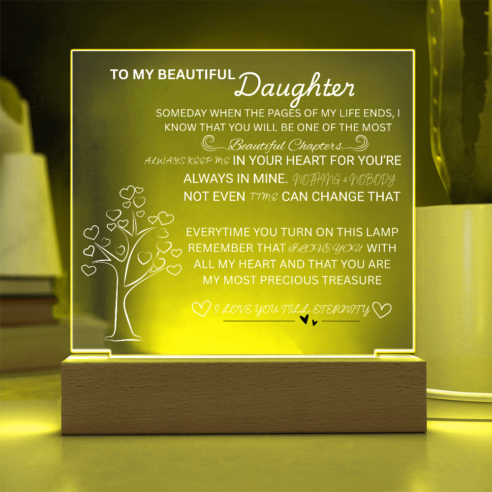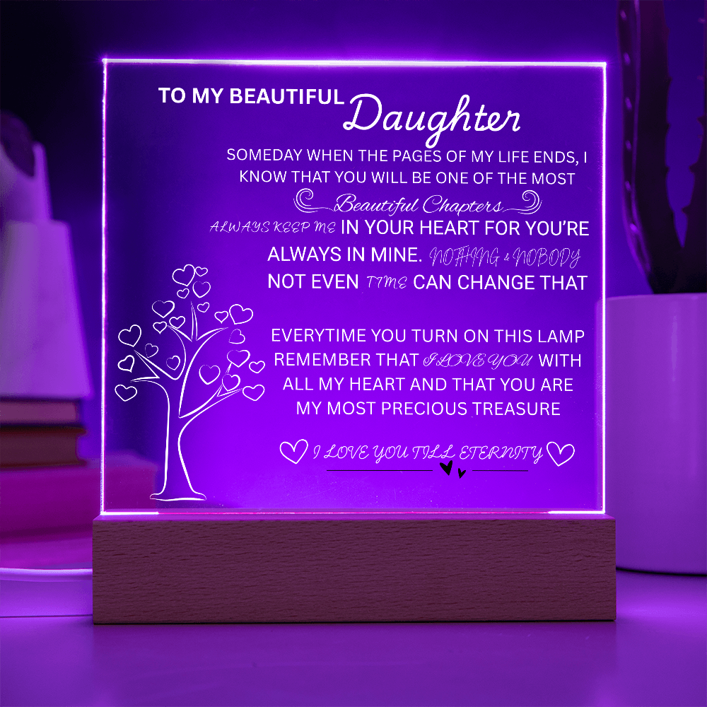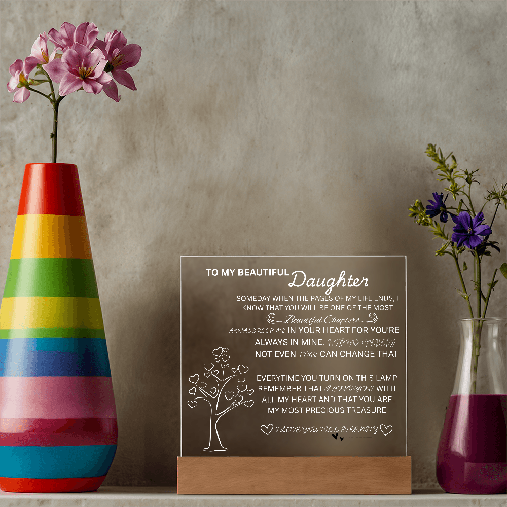 Your plaque will be crafted from premium acrylic with a professionally printed design for a polished look. It comes with a stylish wooden LED base, and you can choose between a USB plug-in option OR a cordless battery-operated option (requires 2 AAA batteries, not included). Both LED bases feature 7 vibrant colors, allowing the user to customize the lighting with various color changes and dynamic cycles.